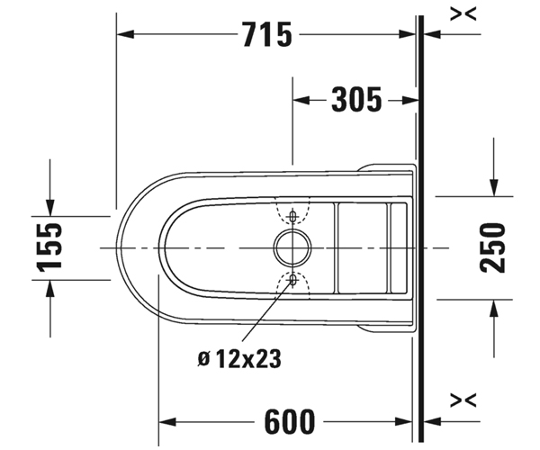 美式座便器, 背靠墙式, 加长型带虹吸喷头, 305 mm/12" 坑距, 单冲水装置,顶部冲水, 适用于 SensoWash® Starck, 垂直出水, 1.28加仑/冲 (4.8升)