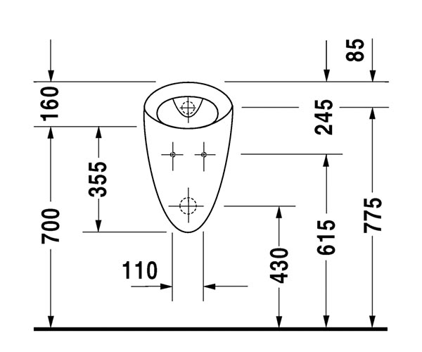 型号 083432 隐蔽式进水和出水, 虹吸式, 包括配件, 无盖 Philippe Starck 设计 尺寸 320 x 285 mm 可变形式 无防溅图标 0834320000 带防溅图标 0834320007