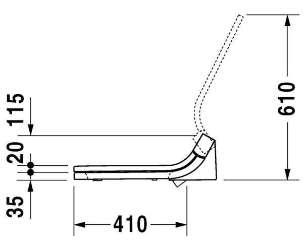 型号 610000 臀部冲洗、女士冲洗和舒适冲洗, 可个性化调节水温、暖风温度、座圈温度、喷头位置和喷水强度, 操控式盖板与座圈, 夜灯, 2 个可调节的个性化用户设置, 包括遥控器, 可自洁喷管, 开 / 关, 一键式轻松安装与拆卸 了解更多 Philippe Starck 设计 尺寸 370 x 515 mm 可变形式 AC 220V 50Hz 610000002011000